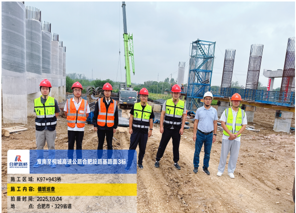 作為合肥“大外環(huán)”西環(huán)的重要組成部分,值此國慶、中秋“雙節(jié)”同慶之際,淮桐高速公路3標(biāo)項目建設(shè)現(xiàn)場,依然是一片繁忙而有序的景象。為確保項目關(guān)鍵節(jié)點順利推進,保障節(jié)日期間施工安全與現(xiàn)場穩(wěn)定,項目部全體值班人員毅然選擇堅守崗位,用責(zé)任與擔(dān)當(dāng)詮釋著別樣的節(jié)日情懷。